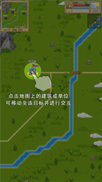 3. 点击地图上的建筑或单位,可移动至该处并进行交互,敌方建筑则需要通过战斗占领。