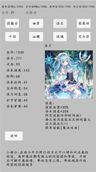 1、关注角色的法术属性,提升后能获得相应的效果增益。