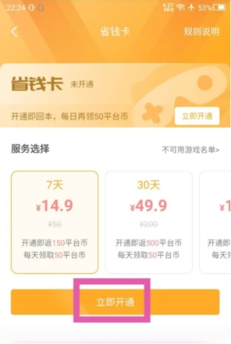 3、在省钱卡页面挑选所需套餐,点击立即开通即可。