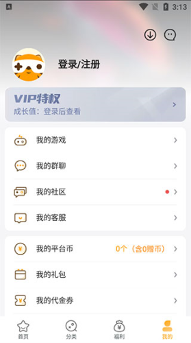 3、分类页包含精选、仙侠、传奇、挂机、卡牌、GM特权及真充卡等标签;
