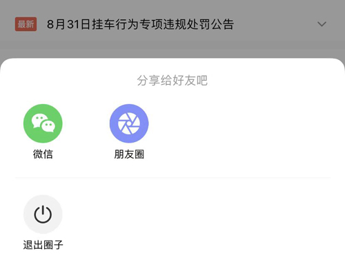 打开应用,点击底部【进圈】选项;在此页面可以看到你已加入的所有圈子;点击右上角的【分享图案】;在弹出的菜单底部选择【退出圈子】即可。退出后将不再接收该圈子的任何消息,请根据自身需要谨慎操作。