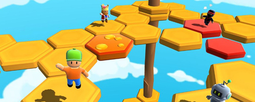 6、每个小关卡结束后,所有玩家会出现在独立格子中;挑战失败的玩家将向下掉落并结束游戏;最后进入结算界面,可查看本次闯关的成就。