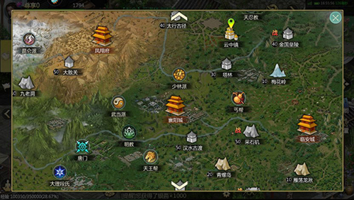 点击右上角的小地图,可以打开完整的世界地图;点击地图上的任意地点标识,角色即可瞬间传送到达,非常便捷。