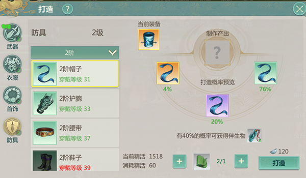 1、进行装备打造时,有概率产出不同品质的装备,同时还有一定几率伴生出磨刀