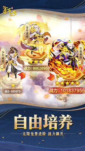 游戏收录了海量精美卡牌与华丽形象,上古仙魔皆可为你而战,助你打造专属的神话全明星阵容;上百种卡牌搭配上千种造型,以殿堂级的美术品质呈现上古修仙传奇。