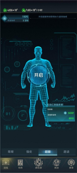 这是一项能让训练效果永久翻倍的特训功能,需消耗经验进行升级;源力值越多,超能升级的倍率也越高。