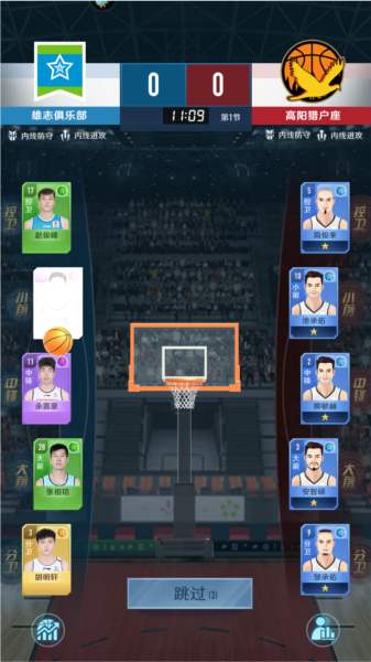 玩家可在游戏中选择喜爱的CBA球队或创建全新队伍,随后开始招募球员、组织训练并参加比赛。