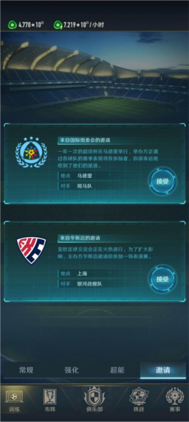 2、悬赏任务:每日需完成,达到指定次数可获得额外道具,包括重要的战术卡;战术卡用于提升阵容等级,能为特定位置增加百分比属性,可根据己方球员或对方阵容进行针对性调整。