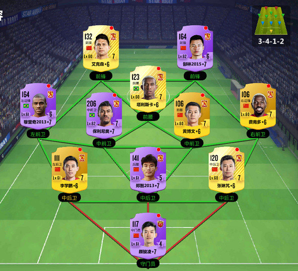 3、对于未获得紫卡的玩家,边路可启用韦世豪,中路可选用金卡郑智,门将位置刘殿座是可靠的替代选择。