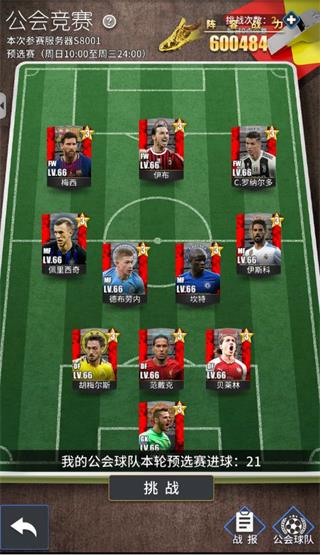 公会阵容仅会长与副会长可调整,战力计算涵盖主角的等级、星级、进阶、特训、装备及配饰等所有加成;需点击默认阵容中的球员进行替换。赛事每个赛季将4-5个服务器分配在同一战区,赛季分为两个阶段:预选赛在周日10点至周三24点进行。每位玩家拥有一定挑战次数,使用公会阵容挑战传奇球队,累计总进球数参与排名;排名前三的公会晋级争夺赛,第四至第六名可获得淘汰奖励。
