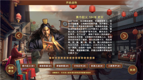 4. 拥有从黄巾起义到北伐时期共16个历史剧本;