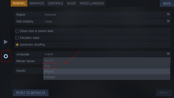6、最后点击底部的【APPLY】应用按钮,系统保存设置并返回游戏界面,此时游戏已切换为中文显示。