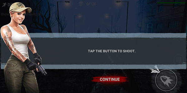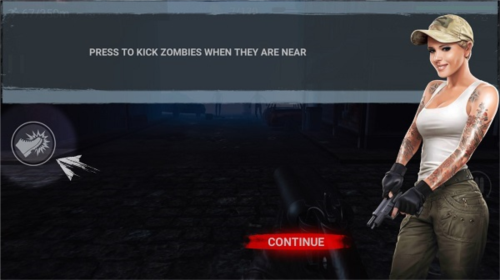 7、应急技能:尽量避免丧尸近身,危急时刻可使用左侧的踢击按钮击退敌人。