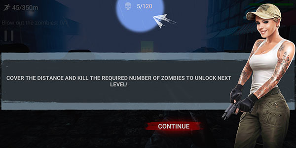 3、持久生存挑战:通过无尽模式磨练你的丧尸猎杀技巧;游戏将持续更新,提供新任务、功能与内容。
