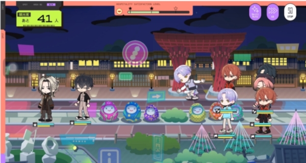 在“塔防风小游戏”的招待战中,会出现与实际观光地对应的地图以及可爱的三头身迷你角色;完全通关后可开启自动模式,轻松完成召回。