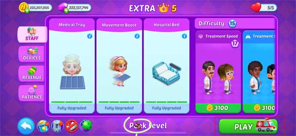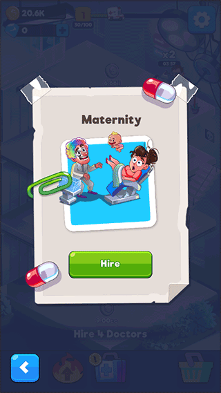 4、获得的奖励可用于升级设施或雇佣人员,推动医院不断成长壮大。