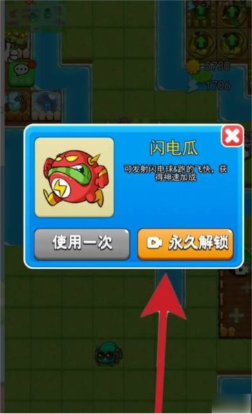 5、最后在弹出的窗口中选择永久解锁,即可成功解锁闪电瓜攻击特效。