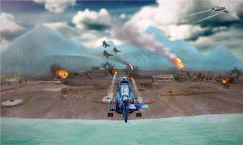6、真实的3D空战场景,模拟驾驶直升机进行射击闯关,高度的模拟驾驶与战斗结合是核心玩法;