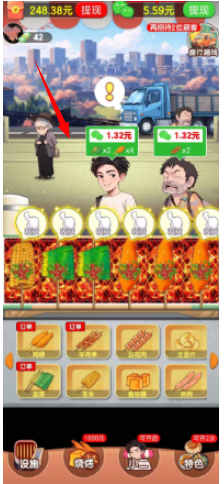 3、根据客人要求制作美味烧烤,赚取金币奖励;
