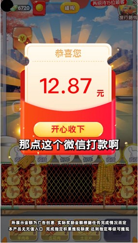 旅行烧烤红包版是一款轻松有趣的休闲小游戏,你将经营一个移动烤肉摊,在快节奏中体验经营乐趣;游戏融合了红包奖励机制,让玩家在享受烹饪过程的同时也能收获额外惊喜;核心玩法是根据不同顾客的口味需求来制作并递送烤串,操作简单却充满挑战。