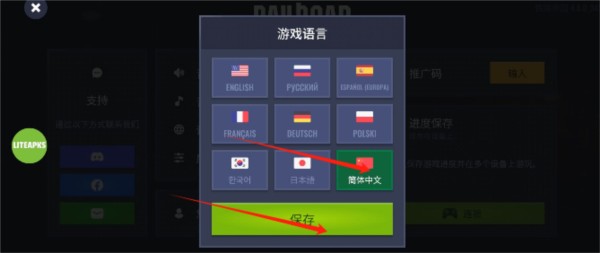 3. 游戏提供丰富的系统语言,玩家找到并点击简体中文选项,保存后即可成功完成设置。