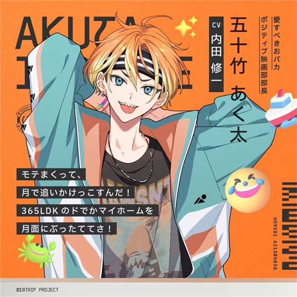 五十竹あく太是HAMA5区长,滨明日桧高中二年级学生,电影部部长,目标是成为宇宙第一的电影导演。他性格乐观直率,积极向上,但容易轻信别人。生日5月13日,年龄16岁,身高175cm,所属队伍Day2。由内田修一配音。