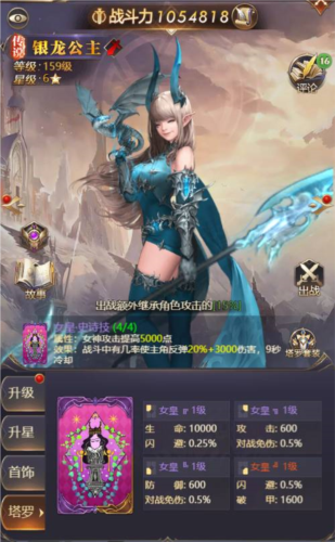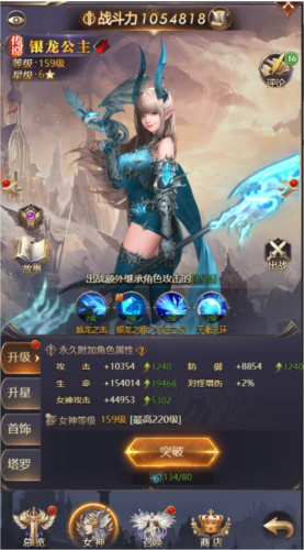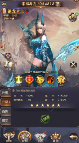 所有品质的女神均可进行升星,升星能带来大量属性提升;不同星级的突破还会额外增加角色的永久属性。