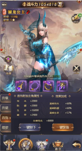 为女神装备首饰可提升双方属性,并获得百分比的“效果加成”;集齐2件、3件或4件同套首饰能激活强大的套装属性,建议至少装备2件以触发基础效果。