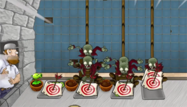 2、在战场上召唤植物,部署防线以攻击前进的僵尸。