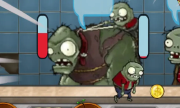 巨人僵尸可以扔出小鬼僵尸,可以将柜台的钱偷走,相当于原游戏里面小偷角色。