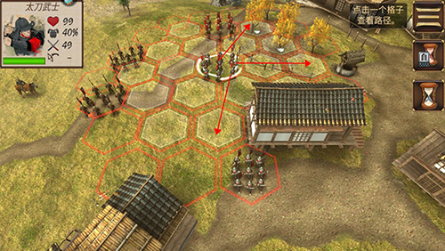 移动部队会消耗行动步数;点击右侧沙漏图标可结束己方回合,待敌方行动完毕后,你将重新获得步数。逐步接近敌军,当进入攻击范围后,即可选择敌方部队发动攻击。