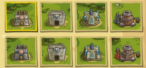 1、兵营:造价70金币,可驻扎三名士兵,用于阻挡和拖延敌人;士兵死亡后会缓慢补充,其站位可随时调整。