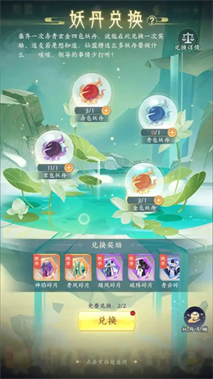 挑战可能获得各色妖丹,集齐四种颜色可进行兑换,有机会得到橙色时装碎片。