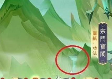 3、再次进入宗门区域,在宗门宝阁外面,点击左侧的瀑布即可获取逍遥录。