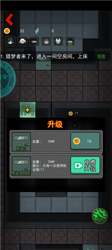 3、若成为睡梦者,需要尽快寻找空房间上床睡觉,之后不断升级装备。