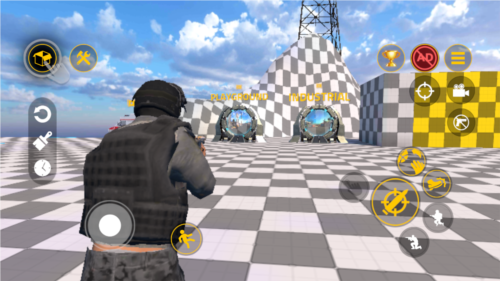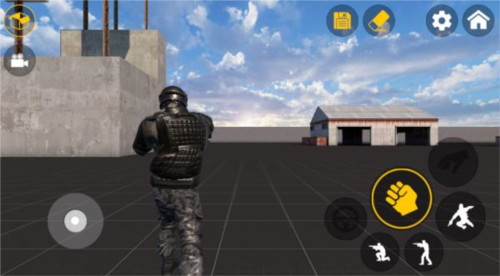2. 通过屏幕上的虚拟按键控制人物移动、跳跃、蹲下以及射击等动作。