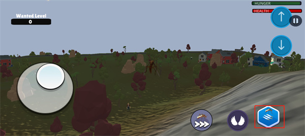 2、操控方面,玩家使用左下角的虚拟摇杆控制移动;双击右下角的翅膀图标即可起飞,再利用右上角的升降键调整飞行高度;飞行过程会持续消耗体力,体力耗尽后需降落地面休息恢复。