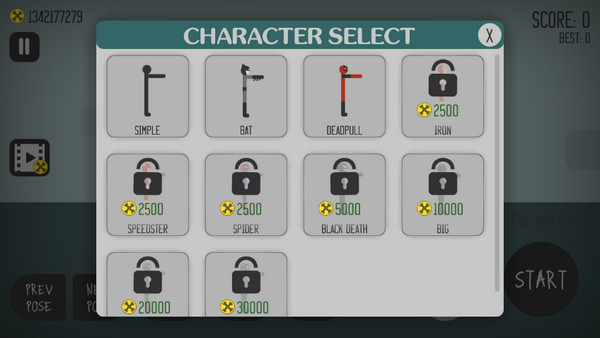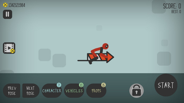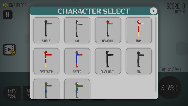 1、游戏主界面左下角有两个按钮,用于切换火柴人的不同姿势;右下角则是“START”开始键。