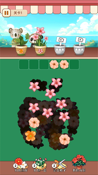 4、打包一盆花;善用打包道具将多个花朵组合为整体,能触发更显著的消除效果,不仅提高通关几率,也增添游玩成就感。