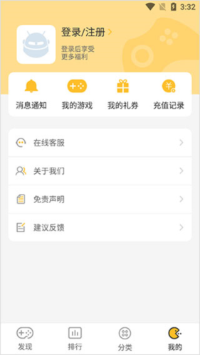 4、在【我的】中,用户可以查看礼券及充值记录,同时能在消息中心查看官方公告与活动。