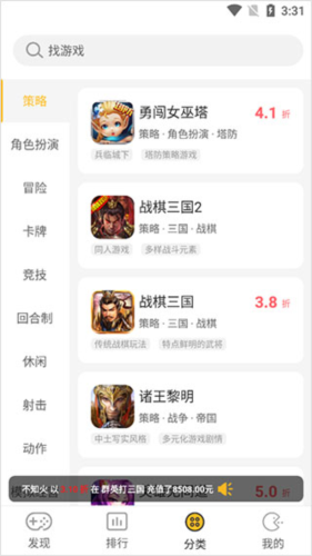 3、用户可以在【分类】中,根据自身需求挑选想要体验的游戏类型;