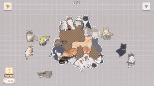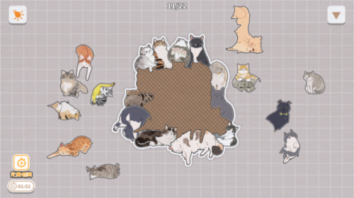 3、挑战开始后,通过长按拖动碎片来移动,点击碎片使其旋转,从而操控猫咪碎片完成拼图。