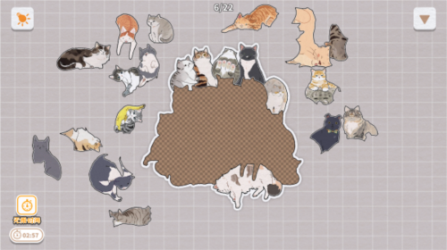 (1)拼图模式:界面上会展示完整的参考图,你需要根据每只猫猫的独特样貌,将其准确放置到对应位置上。