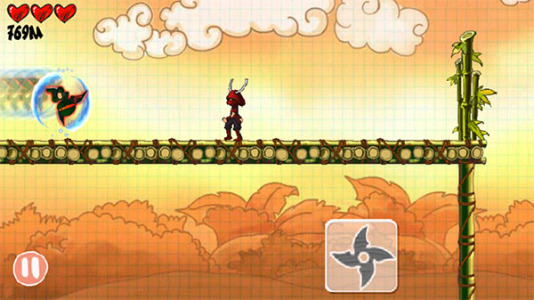 2、必须将它们全部消灭,忍者奔跑距离越远,抵达的关卡等级就越高;