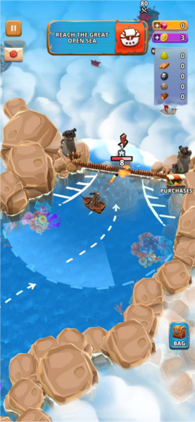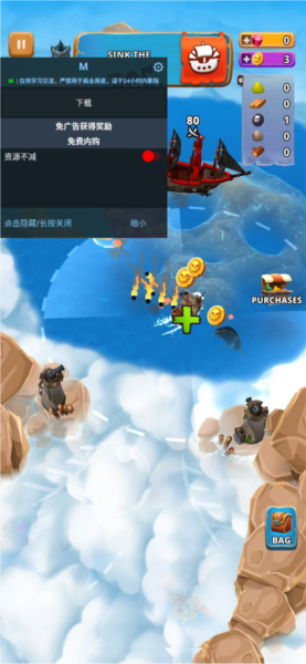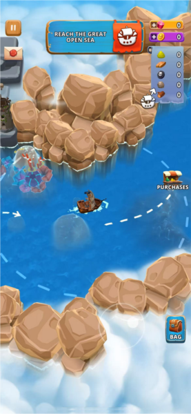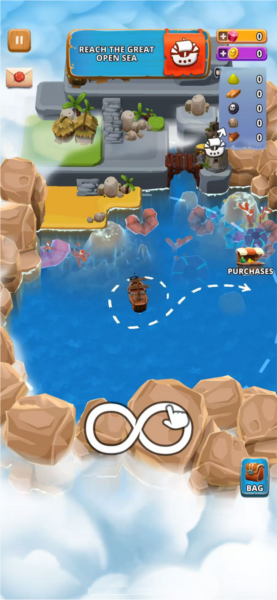 1 启动游戏,进入主界面后,使用虚拟摇杆操控你的船只航行。