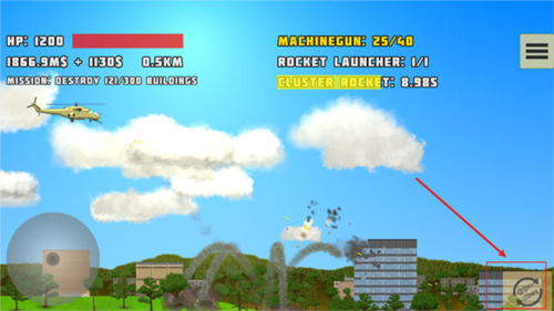 6. 通过移动虚拟摇杆控制方向,点击屏幕指定位置即可发射子弹或炮弹。