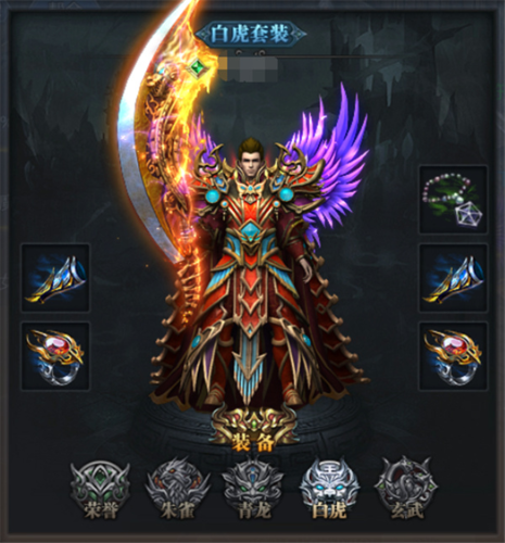 2、【白虎套装】包含白虎项链、手镯、戒指与仁者项链,属性契合战士;仁者项链附带仁者无敌技能,可抵挡大量伤害。