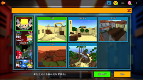 2、模式选择:包括据点争夺、团队竞赛、个人竞赛、和平模式、幽灵模式及躲猫猫模式等。