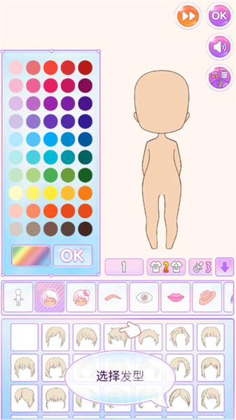 2、提供各种发型、不同肤色,让你装扮出理想的动漫角色;