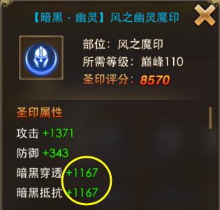 优先佩戴能增加暗黑穿透和暗黑抵抗属性的圣印。